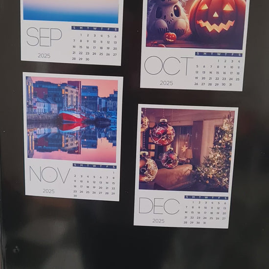 Personalize youre space with youre own magnetic calendar with youre most loved memories. Perfect gift for youre loved ones. Set of 12. Get ready for 2026 with a custom made magnetic calendar.